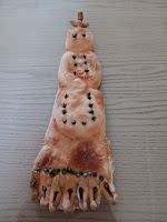 - Πλάθουμε την κυρα-Σαρακοστή με το ζυμάρι φτιάχνοντας το σώμα, τη φούστα, το πρόσωπο, τα πόδια της, τη διακοσμούμε όπως θέλουμε και τη βάζουμε σε ένα ταψί το οποίο έχουμε στρώσει με λαδόκολλα.